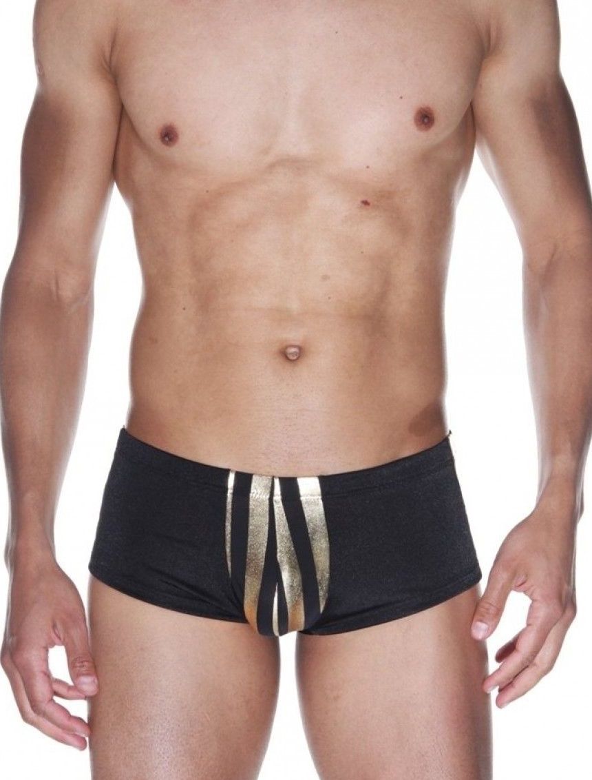 Мужские трусы-хипсы с золотистыми полосками.