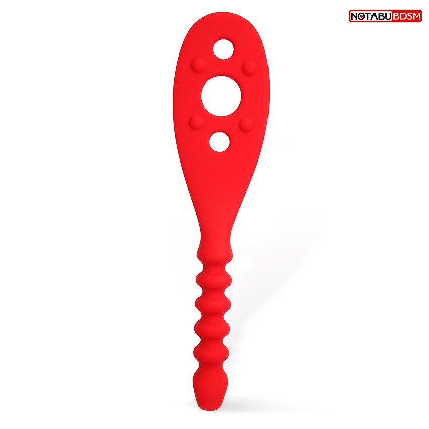 Двойной БДСМ аксессуар для любителей нестандартных эротических развлечений. Совмещает в себе шлёпалку и анальную втулку. Шлёпалка имеет широкую рабочую поверхность с жёсткими шипиками, усиливающими эффект от спанкинга. На шлёпалке имеются отверстия разного диаметра, которые могут отпечатываться на коже. Втулка имеет эргономичную форму ёлочки, способствующую более комфортному введению. Секс-игрушка изготовлена из приятного на ощупь материала, гнётся в разные стороны. Идеально подходит для «разогрева» перед интимной близостью, а также в качестве элемента в ролевой игре. Длина ручки - 11,5 см, диаметр - 2,5 см.