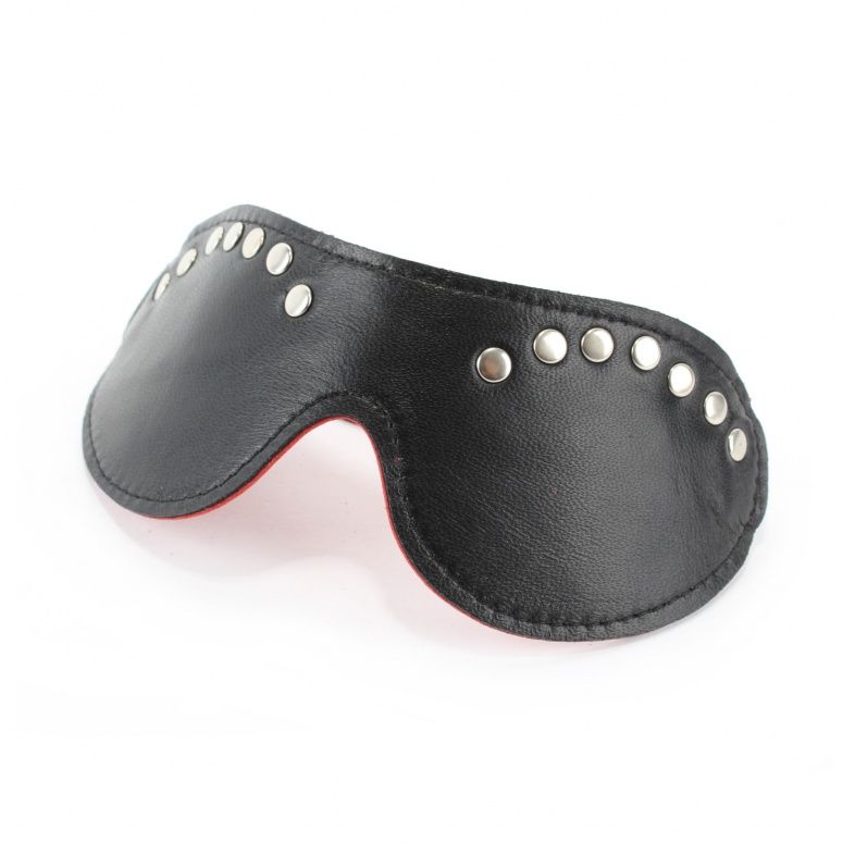 Красная маска из кожзама, декорированная заклепками. Крепится к голове при помощи удобной резинки. Длина маски - 19,5 см., ширина - 7 см.