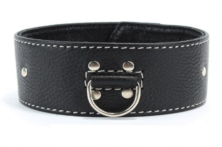 Черный кожаный ошейник с петлёй для поводка. Ширина - 5 см.