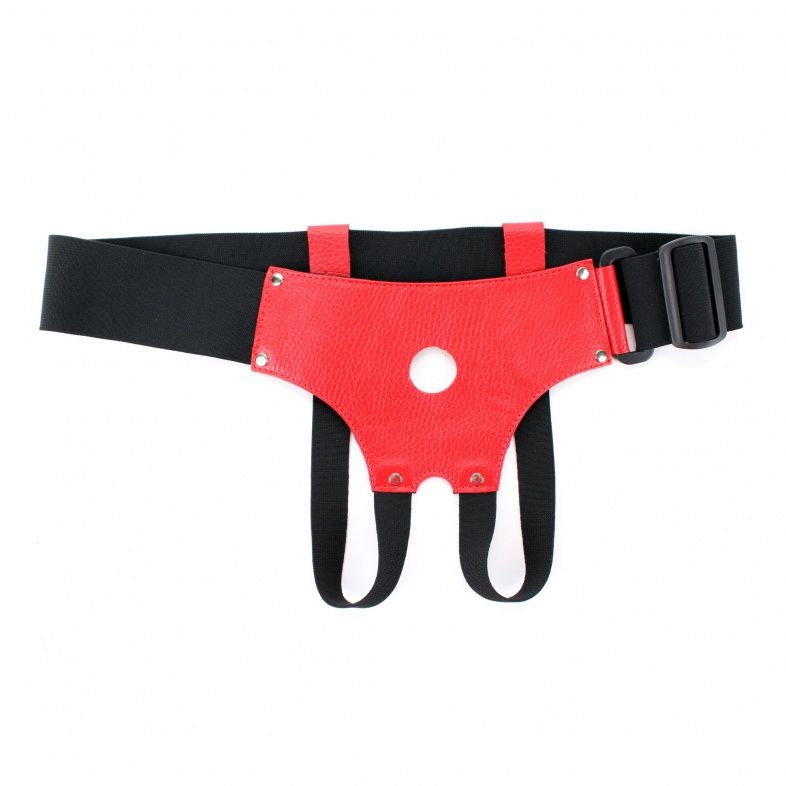 Трусики выполнены из натуральной кожи красного цвета с элементами из черных эластичных резинок, надежно фиксирующих изделие на теле.Ширина резинки на поясе 5см.Трусики джоки обеспечивают доступ к интимным зонам. Диаметр отверстия для страпона 2,5 см. Размер удобно регулируется, подойдет на 42-46. Максимально комфортный аксессуар разнообразит любую БДСМ игру.